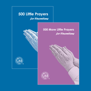 Para esos momentos en los que solo necesita una oración rápida, pruebe 500 Pequeñas Oraciones para los Vicentinos, o 500  Más Oraciones Pequeñas para  Vicentinos (y en junio también puede usted conseguir Otras 500 Pequeñas Oraciones para los Vicentinos).  También puede descargar  500 y 500 más para leerlos en su móvil (son un poco largos de imprimir en casa). Lo siento, estos son solo en inglés.