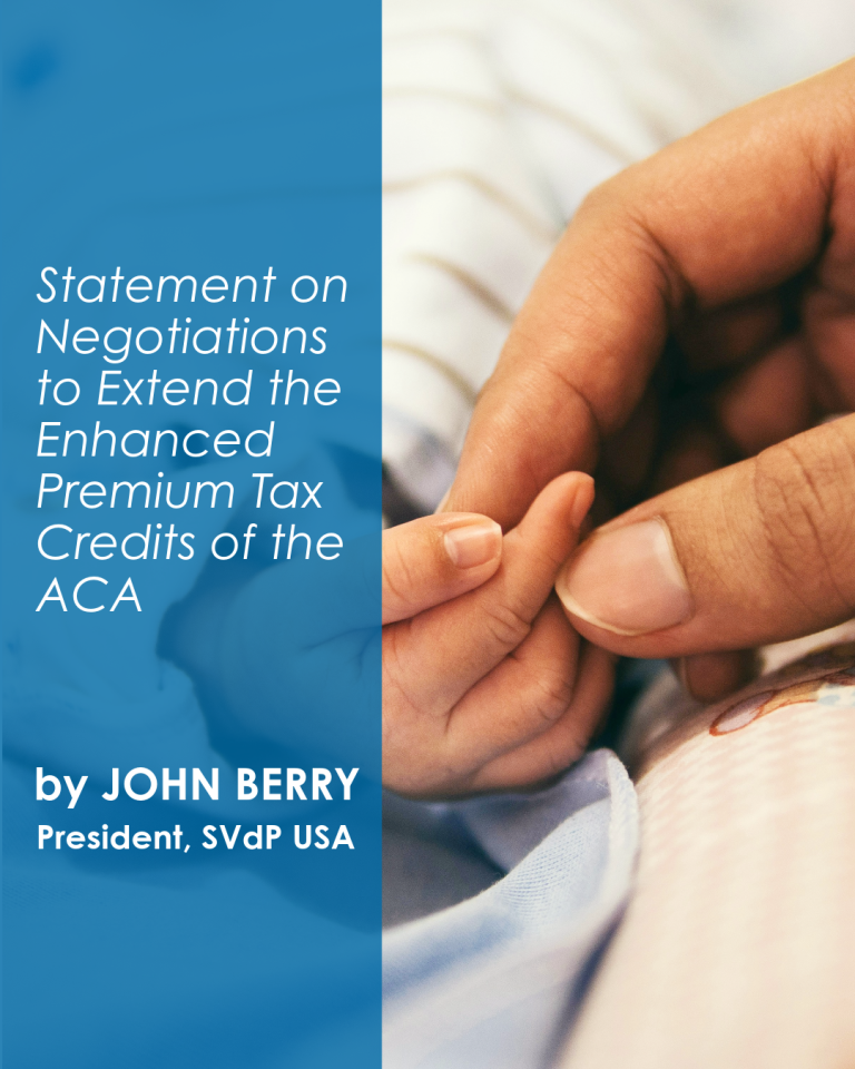 The Society of St. Vincent de Paul USA welcomes bipartisan efforts in Congress to extend the enhanced premium tax credits under the Affordable Care Act (ACA). We urge members to continue good faith negotiations to ensure that health care continues to be affordable for the millions of Americans who purchase coverage through the health insurance marketplace.